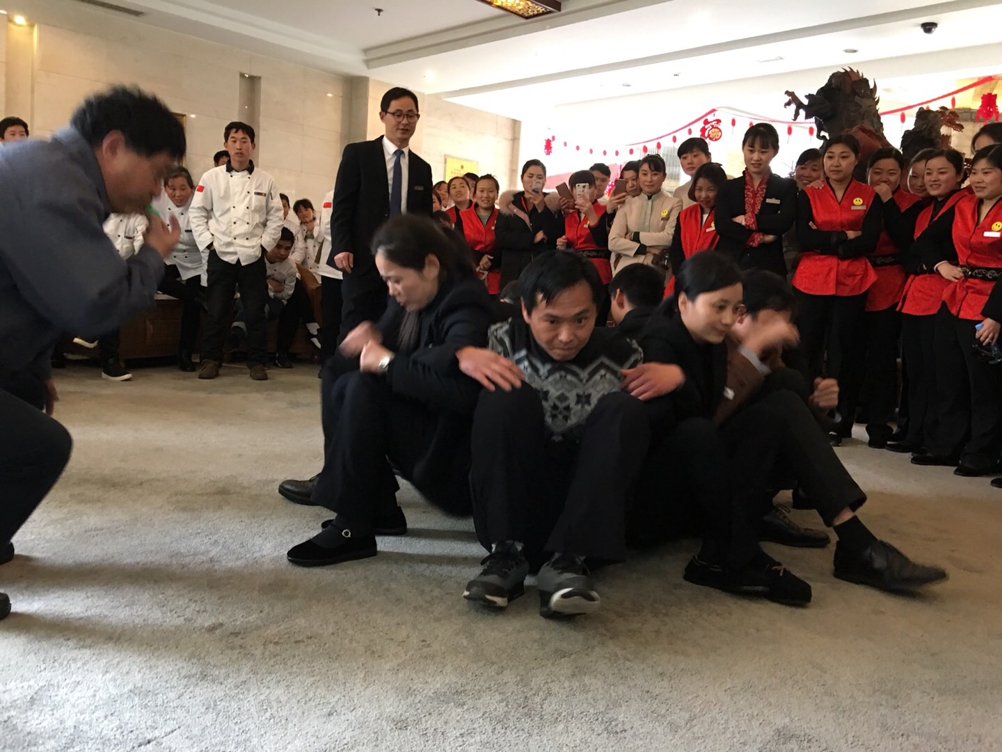上午山庄边总和汤总为每位女员工送上鲜花并致以节日祝福,让大家感受到了山庄的温暖。下午则是趣味活动环节,大家热情而活跃的参加了集体跳绳、筷子夹兵乓球、坐地起身、切土豆丝、大乱踩气球的等趣味活动,边总也被现场的氛围所感染,亲自为大家指导,示范土豆切丝,将节目的氛围推向了高潮。